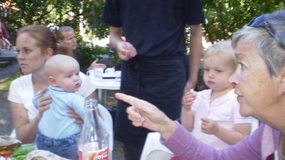 Yes Margaret and Annette have big smiles...well, they're in pink and white. They're not getting ear ache from Rhoda....I can't understand it. I really meant to wear pink today