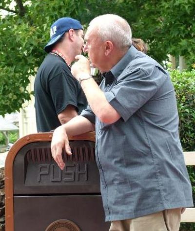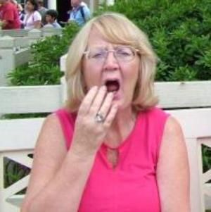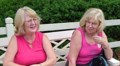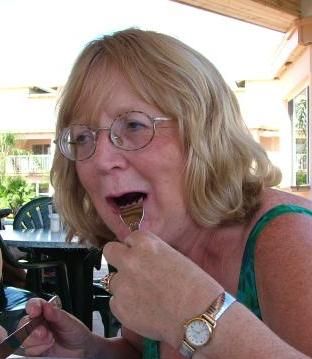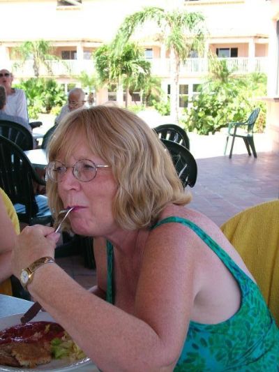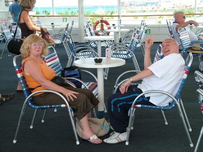 Here are two jolly sailors on their way to the Bahamas Kath is seen in a rare moment when she is not smiling.....nor eating