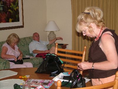This is our apartment in Orlando Kath and Margaret are seen here rooting in their handbags... ...probably looking for something to eat