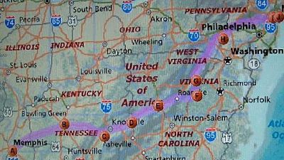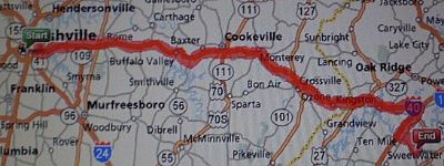 My way of saying that we started in Memphis and after a thirteen hundred mile journey thro TN, VA, PA and NJ we arrived at NY . Actually, plugging in all the stops, Mapquest comes up with a distance of 1273.41 miles