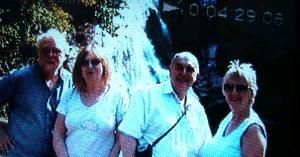 ...and we site saw. Here we are immediately after our barrel-ride down Bald River Falls.. L to R Jon, Margaret, Johnny, Kath If you look carefully you'll see that Jon has secreted the barrel in his shirt