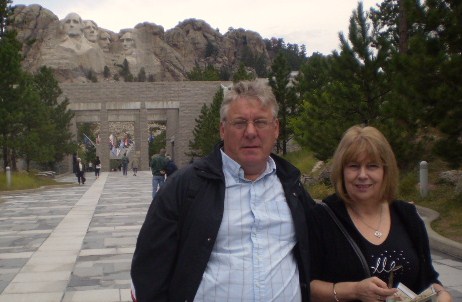 This is Friday 12th Sept. Here's Kath and Johnny at Mount Rushmore where the heads of the first, third, 16th and 26th Presidents of USA are carved into the mountain.