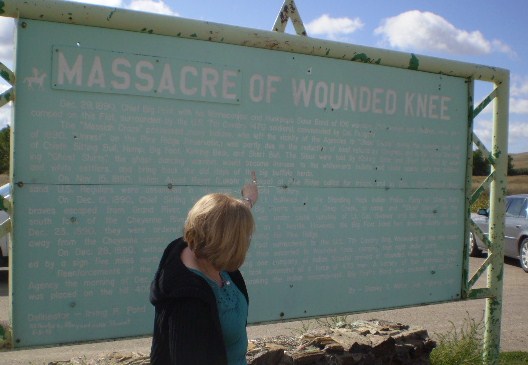 Here's Margaret on Saturday 13th at Wounded Knee where a massacre of the Sioux took place, Sitting Bull having been killed two weeks earlier. We then journeyed on, popping over the border to Nebraska before heading back North through Indian country to Custer National Park