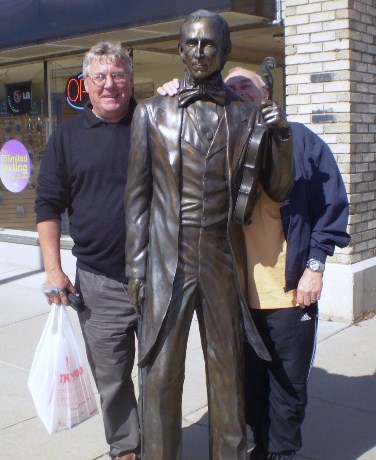 Here we are, seemingly together on one photograph but, in reality, Kath has a cardboard cut out of Jon slung across her shoulder. Johnny is looking smug, thinking " Rather ye than me pet...ah knaa its ownly cardboard but, he's such a fat get, it must still be heavy